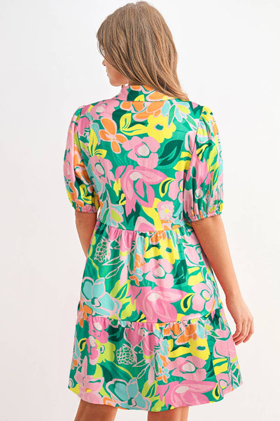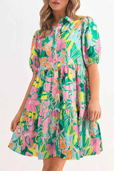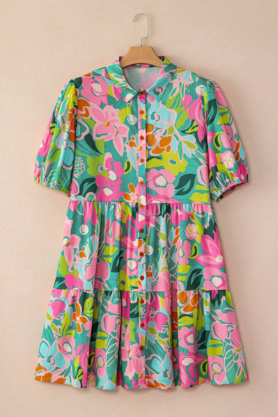 Julia Floral Print Collared Loose Babydoll Mini Dress